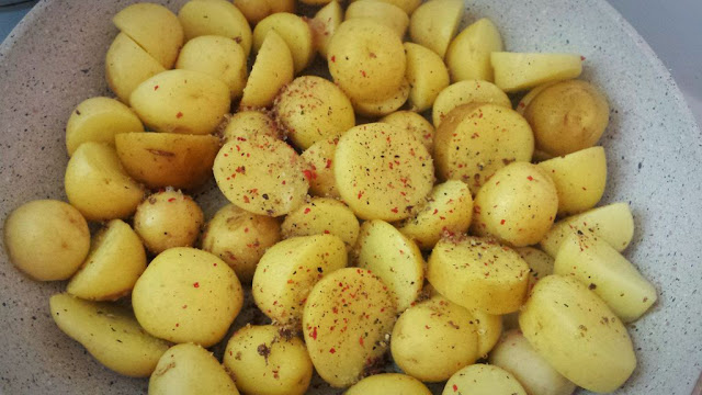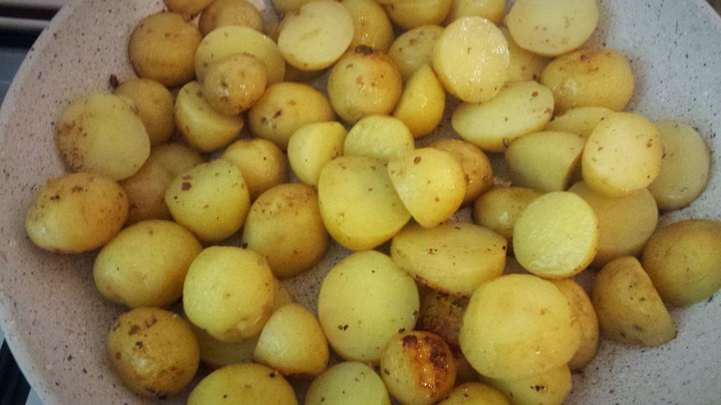 Cartofi noi rumeniti in tigaie, in unt de cocos, alaturi de ierburi aromatice? Da, cu siguranta!