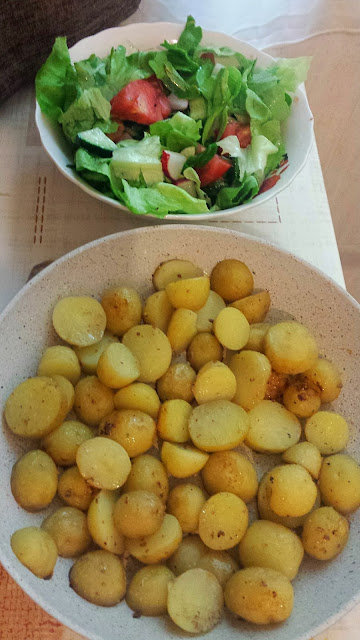 An dupa an urmaresc cu un sentiment de placere si recunostinta instalarea primaverii: mai multa lumina, explozie de culori, miros de pamant reavan, aromele florilor si ciripitul zglobiu al pasarilor. Iubesc primavara pentru despuierea de cojoace si adierea calduta a vantului in plete-mi si pentru prima inghetata savurata afara, in aer liber. Intre toate, mai e un motiv pentru care ma bucur ca un copil: o portie de cartofi noi, mititei si rotunjori, rumeniti cu sare in tigaie, alaturi de o salata de …primavara.