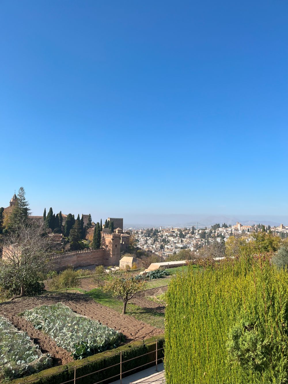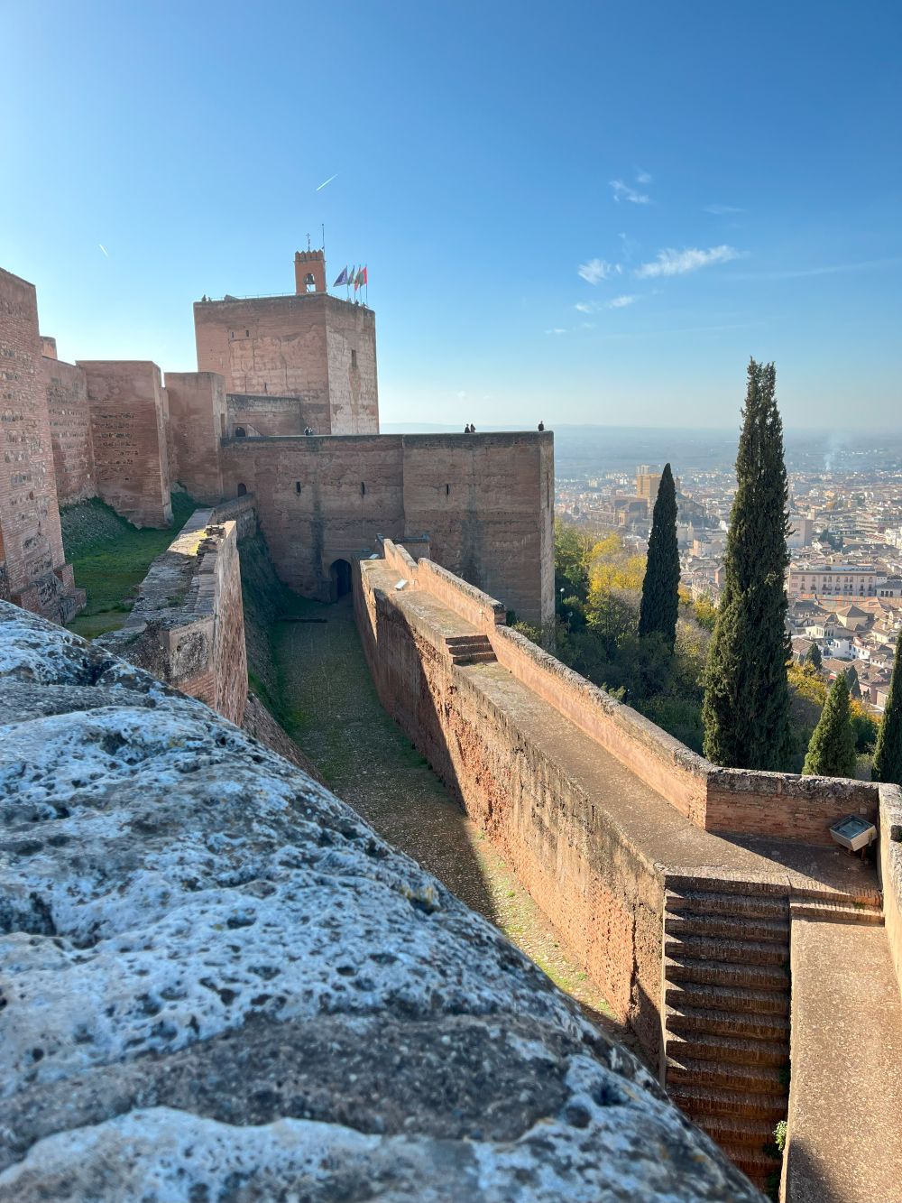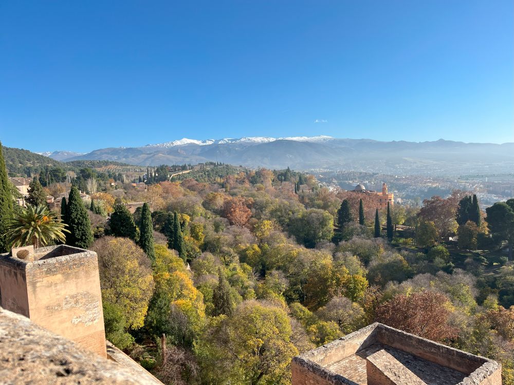 De pe meterezele turnurilor de apărare ai o priveliste completă, atât asupra munților Sierra Nevada, cu crestele înzăpezite, cât și asupra orașului Granada și cartierului Albaicín.