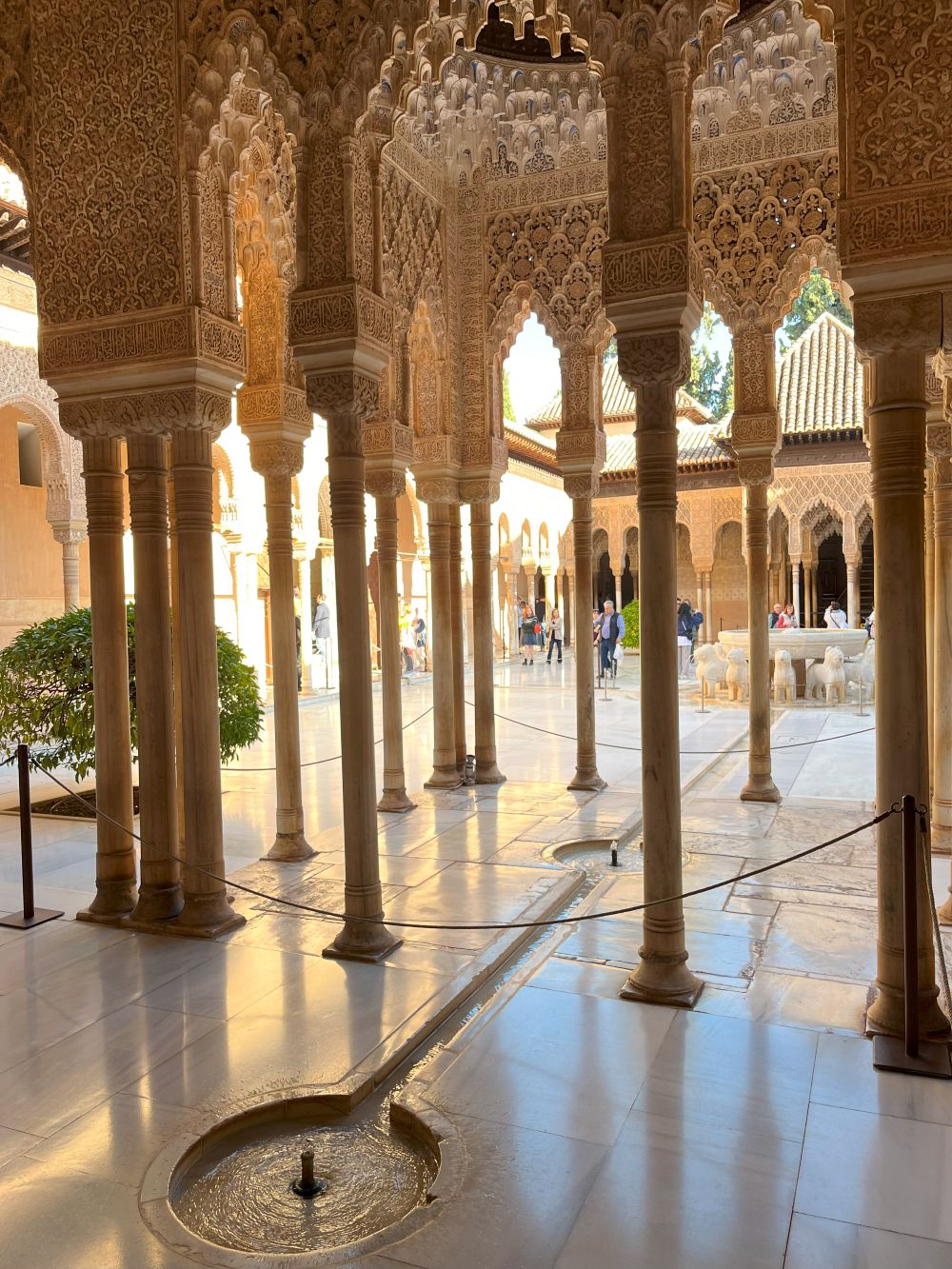 Palatul Nasrid este fără îndoială inima complexului, un labirint de săli și curți unde fiecare coloană și fiecare arcadă spun povești sculptate în piatră și ipsos. Privirea îți este atrasă de detaliile păstrate ale inscripțiilor arabe. Iar ferestrele înguste lasă lumina naturală să se reflecte pe podelele de marmura.