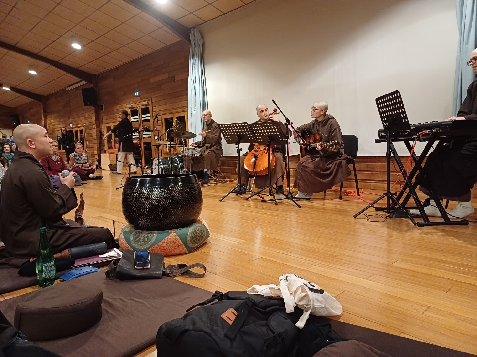 Las în continuare câteva poze de la ceremonia de Anul Nou de la Mănăstirea Plum Village, cu nota că pozele trunchiază masiv bogăția experienței trăite.